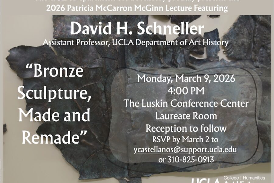 This year’s lecture will be presented by Professor David Schneller, Assistant Professor of Art History, on Monday, March 9, 2026. All are welcome but kindly RSVP in advance by emailing: ycastellanos@support.ucla.edu or call (310) 825-0913 by March 2.