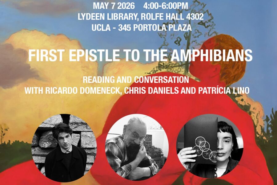 Book Launch for FIRST EPISTLE TO THE AMPHIBIANS, a collection of poetry by Brazilian author Ricardo Domeneck, translated by Chris Daniels, published by World Poetry Books in April 2026. The event will consist of a reading and conversation with Ricardo Domeneck, Chris Daniels, and Patrícia Lino.
