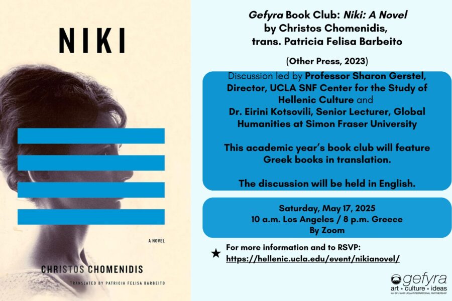 The Gefyra Book Club meeting is part of Gefyra (Bridge), a collaborative program established by the UCLA SNF Center for the Study of Hellenic Culture and the Simon Fraser University SNF Centre for Hellenic Studies with support from the Stavros Niarchos Foundation (SNF).