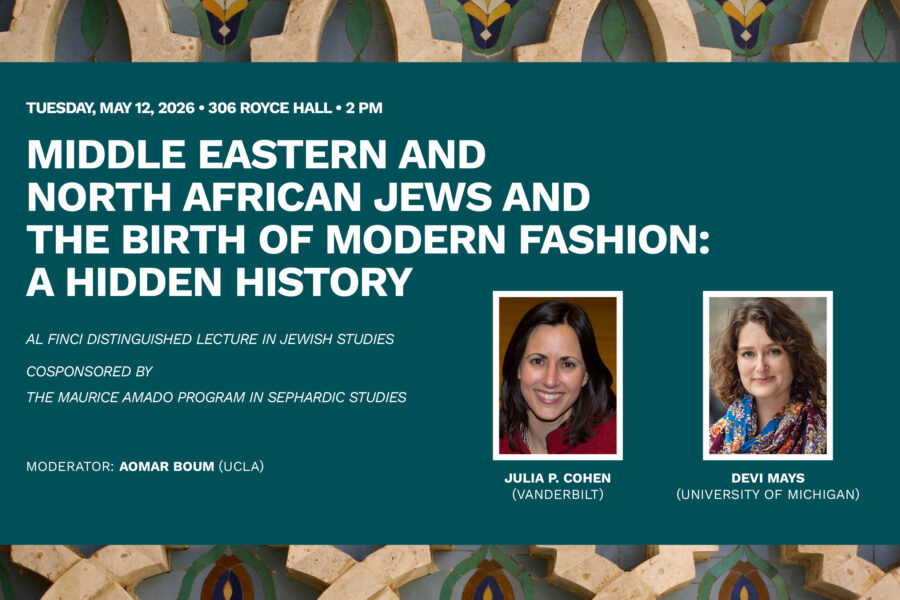 In this talk, historians Devi Mays and Julia Phillips Cohen discuss the unknown role that Jews from the eastern and southern Mediterranean played in the shaping of modern couture. Following two fashion houses run by an interconnected network of North African and Middle Eastern Jews in fin-de-siècle Paris, the talk reveals the participation of these firms in a global web of makers, suppliers, and designers stretching from Algiers and Constantinople to Cairo, Tabriz and Kyoto.