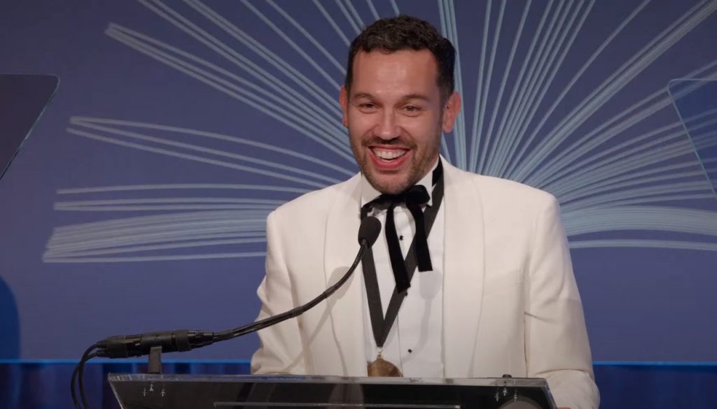 Justin Torres giving acceptance speech at National Book Awards on Nov. 15 2023
