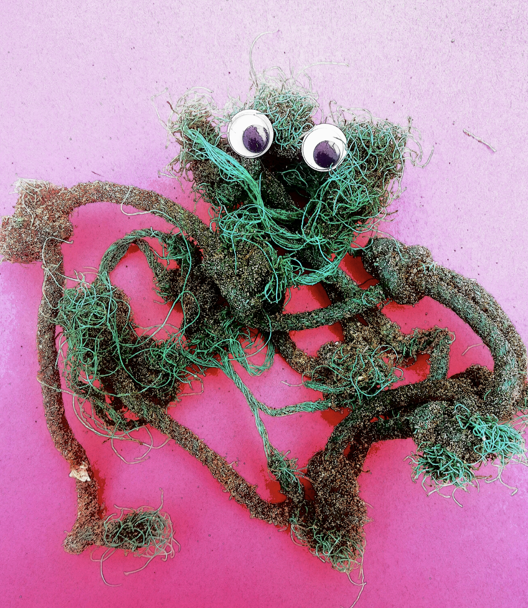 Zubiaurre’s current art series and street intervention called “The Immortals” is one example of how she examines the social and environmental impact of “discarded creatures.” She is obsessed with beach trash and has been doing art with plastic that she picks up from the beaches in Venice and Playa del Rey, CA. She then puts googly eyes on it, takes a picture of it, prints it, pastes it on a tile, and glues the following text on the back of the tile: “Take me home. I am the perfect pet. I am plastic and therefore immortal. I was found on the beach. I am as cute as I am dangerous. I destroy the ocean and the environment. Birds snatch me and fly away, death dangling from their beaks.”