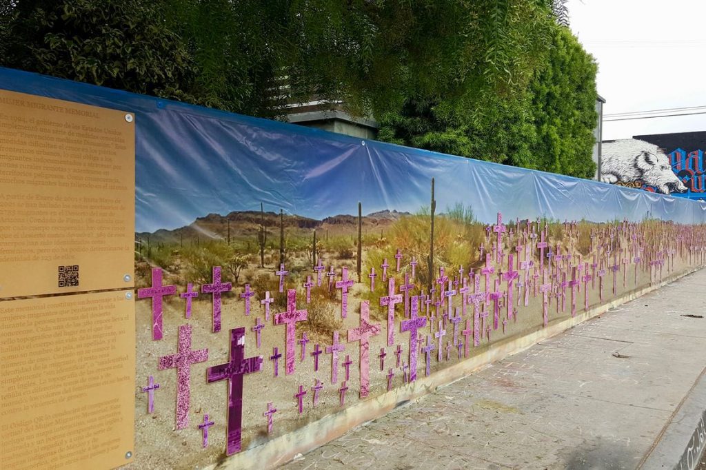 In this mural, each cross represents a female migrant who died in Pima County, Arizona, near the U.S.–Mexico border from January 2001 through May 2021.