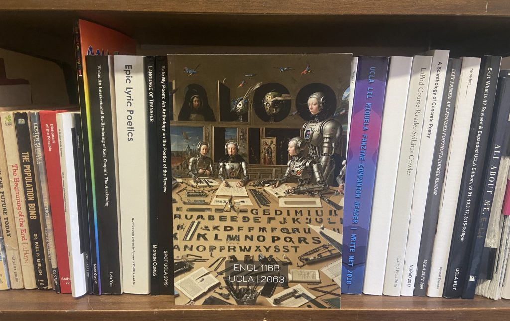 For the class’s first assignment, students worked as a team to produce a 233-page book using an AI text generator. After reading essays on digital poetry and electronic literature, students used the insights they gained to create a fictional look back, from the perspective of an “artificial literary historian” writing in the year 2063, reflecting on algorithmic literature over the past 40 years.