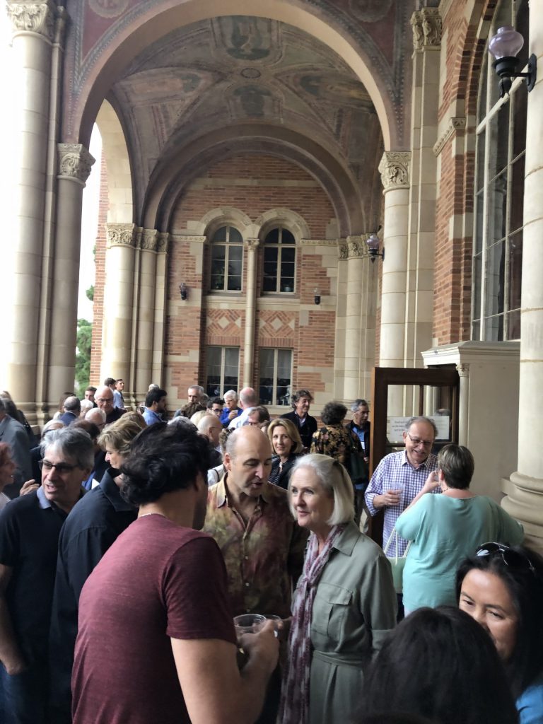 UCLA SNF Center faculty and community members celebrate a lecture by Artemis Cooper at Royce Hall in October 2019.